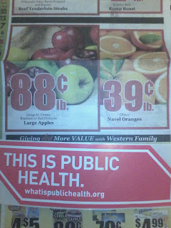 There's nothing like going back to the base of what can make or break us--our diet. This advertisement is telling people to buy good, healthy food for cheaper. It is an incentive to eat healthy.